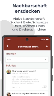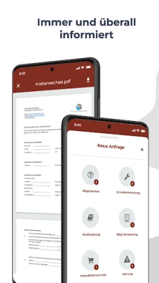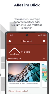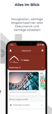 Funktionen: • Passwortgeschützter Zugang • Übersicht von wichtigen Ansprechpartnern und Notfallkontakten • Zugriff auf wichtige Mitteilungen und Termine • Jederzeit Zugriff auf relevante Dokumente • Abwicklung von (Schadens-)Meldungen, Schlüsselbestellungen etc. direkt via Smartphone inkl. aktueller Bearbeitungsstatus • Gutscheine und Angebote von lokalen Restaurants und Dienstleistern • Erfahre näheres über deine Nachbarschaft • Raumbuchung der Communityfläche