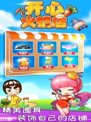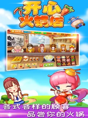 【简介】《开心火锅店》是美食控的盛宴!以制作火锅为核心玩法的游戏,通过满足顾客的各种有趣奇葩的要求,来制作出各种好看又好吃的火锅,让上帝们早点放下票票离开!丰厚的玩家福利,拯救各种频临破产的店铺,给你前所未有的制作经营体验!游戏采用日式动漫风格,整体画面清新可爱!【游戏特色】体验40多种特色火锅的制作方法。让你爱不停手多种Q版人物角色,大肚子海盗王,only you的唐僧,体术高手小李等等丰富的关卡设计,多样的室内装饰,来打造属于自己的火锅店