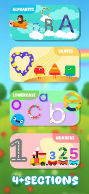 Alphabet Tracing โ๏ธ: Let your child practice their ABCs by tracing letters. Kids trace both uppercase and lowercase letters with their fingers, improving writing fluency.