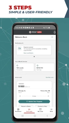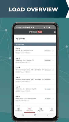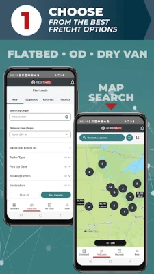 • Map based searching: Find your next load with ease by viewing a list of available loads on a map