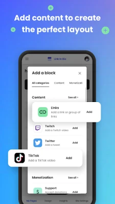 2. Easy to add and edit: Add your links and content including files, images, videos, playlists, music, storefronts, social media platforms, logos, or anything else you might want to add! Add multiple pages to organize your content however you want. Easy WYSIWYG editor allows you to tap, drag, and rearrange.