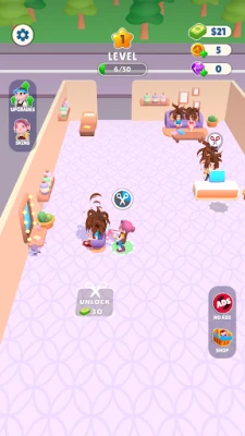 As you progress, unlock new features, gain access to bigger upgrades, and celebrate every milestone in your journey to beauty salon success.