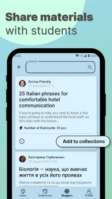 • Free mode available: Create up to 5 private flash card collections and share up to 3 flash card collections in a public space.