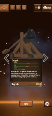 Proceed to higher levels and open new maps and devices. To conquer stronger castles, upgrade your catapults to shoot the longest distance and do more damage to the enemy castle. Every catapult has different features, and for different castles, different catapults are practical to use. Currently, there are 3 maps, which will be 10 in the upcoming upgrades. There are two different catapults. The number of catapults will be 10 with the upcoming upgrades.