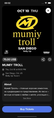 Discover live events tailored to you. Follow your favorite bands and artists to know when they visit your city. Get tickets to the best shows and send to friends. Get on a waitlist for sold-out shows and snatch those tickets if someone returns theirs. See what your friends are doing and make plans together. Receive cash back on selected shows and so much more!