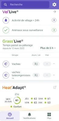 - Day and night, identify the animals to be monitored to help you intervene at the best time - Anticipate risky situations using qualified indicators to monitor their progress - Identify the animals to be examined to validate the opportunity to correct the ration or initiate health care - Organize and plan the work on your farm.