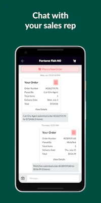 * Simplify your ordering process with a personalized order guide. * Explore our extensive product catalog with item photos and detailed attributes like nutritional info. * Effortlessly access your order history and reorder past favorites. * Conveniently view and pay invoices using Credit Card, Debit Card, or Bank Transfer. * Stay connected with your sales rep and the Fortune Fish team through in-app chat. * Collaborate with team members to streamline and enhance your ordering experience.
