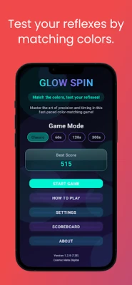 Glow Spin is a fast-paced color reflex game that challenges your brain and your speed.