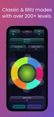 Tap the matching color on the spinning ring before time runs out! Sounds simple? Think again — the ring rotates, colors shuffle, and speed increases with every move.