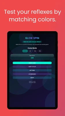 Whether you have 30 seconds or 30 minutes, Glow Spin is the perfect quick game to test your reflexes. Easy to play, hard to master — just one more try!