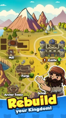 The story begins with the kidnapping of the kingdom's princess, leaving your heroes as the only hope. To save her, you'll start by reconstructing the village, collecting resources like wood and ore, and constructing buildings to improve your surroundings.