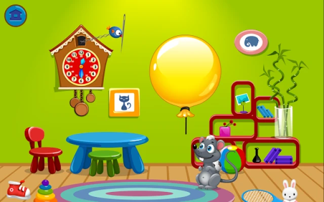 Travel through the four rooms of a house filled with clocks and help Ticky the Mouse collect the cheese and eat it by setting and telling the correct times on analog and digital clocks. The lite version covers hours and half hours. The paid version includes smaller time increments.