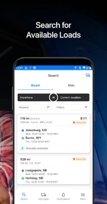 Search for loads, place bids, track, and upload paperwork anywhere, anytime.