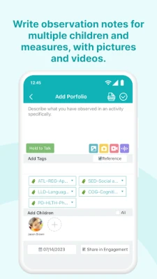 3. Uses preset portfolio tags to help preschool teachers and childcare providers track and organize children’s developmental observations and assessment evidence. There is a set of built-in Early Learning Standards can be used. You can always contact help@learning-genie.com to customize and upload your custom set of tags. The portfolio tool also provides a quick summary of what has been observed and unobserved in a specific period of duration to help teachers stay on track.