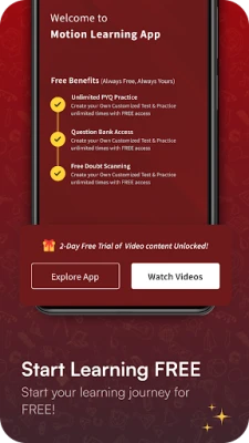 Disclaimer: The features shown are based on what’s currently available in the Motion Learning App. Actual experience may differ based on your course, plan, or location. We don’t promise guaranteed ranks, exam success, or specific results. Free tools like PYQs, video lectures, and doubt support may be limited or change over time. Stats and numbers shared are based on our internal records and may include past data. Motion Education Private Limited is not associated with any exam conducting body.
