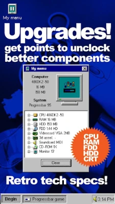 Progressbar95 is a casual game, but a very addictive one. Vintage computer simulator game with old pop-ups and hardware upgrades.