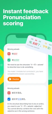Role-play travel, work and social scenes; get instant feedback on Chinese pronunciation, tone accuracy and fluency scores.
