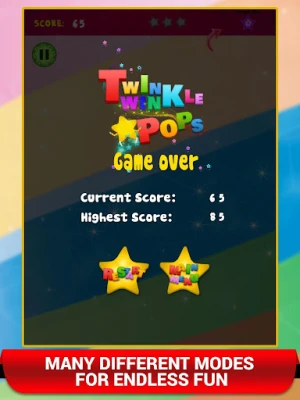 Normal Mode: Allows kids to pop stars. The speed of the stars will be slow since this mode is for the beginners and toddlers. The players will have a limited number of lives given.