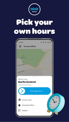 Deliver in the evenings, for a few hours during lunches – or whenever you feel like it. The app makes your life with Wolt easy. It gives you clear live updates on where you can pick up your next deliveries and how much money you’ve earned.