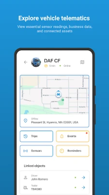 Key Features: — Live Tracking: Monitor vehicles and employees on a map or in a list view. — Trip History: Analyze routes, mileage, and stops over any selected period. — Notifications: Stay updated with event alerts and push notifications. — Enhanced Security: Two-factor authentication via email for added data protection. — Branding Support: Customize the app with your logo and corporate colors. — Global Compatibility: Supports metric, imperial, and nautical measurement systems.