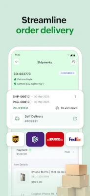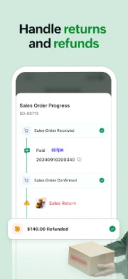Track and manage your sales orders from confirmation to delivery. Get instant notifications for new orders and order statuses. Quickly process, update, or cancel orders on the move.