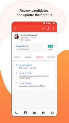 Held up in meetings or stuck in traffic? Zoho Recruit's hiring app helps you stay in touch with your candidates, clients, and contacts. They are just a call or text away.