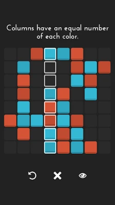 It's up to you to complete the grid without ever having to guess. Simply tap a tile to make it blue or red and complete the grid.