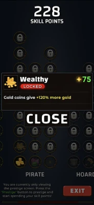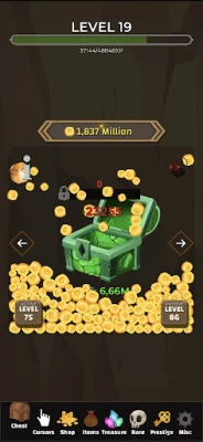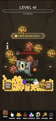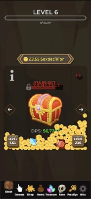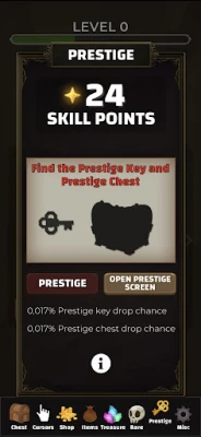 Once you have enough skill points, you can choose to prestige. Spend your skill points on unique prestige upgrades tailored to your play style. There are upgrades available to suit every preference. Invest all your skill points into passive damage and witness the chests opening effortlessly while you relax. If you prefer the spectacle of gold and treasures flying out from the chests, allocate your skill points towards the gold and treasure upgrades. Regardless of how you choose to allocate your skill points, you will significantly enhance your strength!