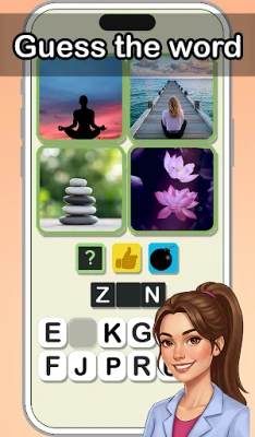 In each level, you will be shown 4 pictures. You'll have to guess the word associated with these pictures. The letters on the keyboard and the number of letters in the answer space will help you find the solution to the puzzle.