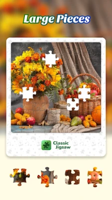 ★ Choose from thousands of jigsaw puzzles Categories: We offer over 30 categories, including natural, animals, food, sceneries, houses, plants, landmarks etc.. You can choose whatever you want. You can choose level of difficulty, puzzles are auto-saved, and layout is good.