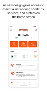 Lynxx CommandIQ provides subscribers with the tools to secure and take control of their home Wi-Fi network. Protect your home with app features like network security, password and SSID management. Take control with app features such as parental controls, device management, view connected devices, and perform bandwidth speed tests.