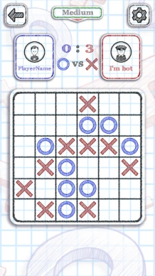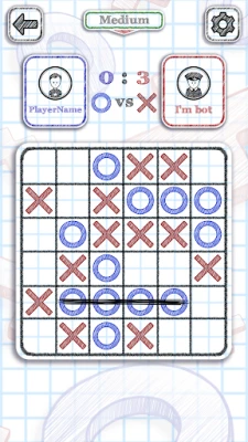 BOT GAME Tic Tac Toe is easy to play on Bot. You should just choose your level. Low is a kid level! Mid level will check out your Tic Tac Toe skills! High level – we bet you will fail to win!