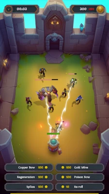 - Get gold from eliminating monsters - Spend your gold on powerups - Every 30 seconds the powerup selection gets renewed