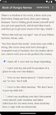 "Werewolf: The Apocalypse — The Book of Hungry Names" is an interactive novel by Kyle Marquis set in the World of Darkness. It's entirely text-based—1.6 million words, without graphics or sound effects—and fueled by the vast, unstoppable power of your imagination.